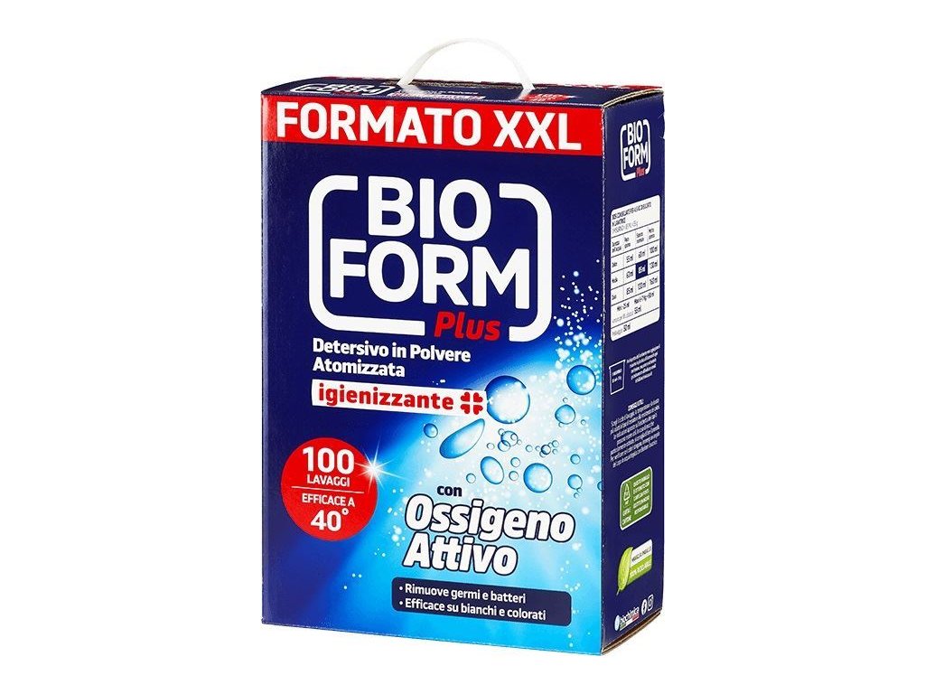 Prací prášek Bioform Plus Plus Detersivo in polvere Atomizzata igienizzante s aktivním kyslíkem účinně odstraňuje nečistoty a odolné skvrny i při nízkých teplotách. Přítomnost aktivního kyslíku zajišťuje hygienickou čistotu a pomáhá odstraňovat plísně a bakterie. Zároveň dodá prádlu dlouhotrvající svěžest.