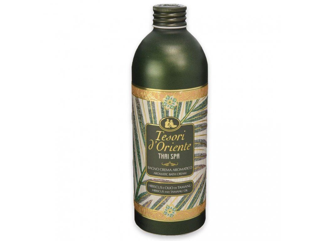 Tesori d'Oriente Thai Spa s tajemnou a hypnotickou vůní je výzvou k výletu do báječných thajských lázní za vnitřní krásou a harmonií. Obklopí vás jemná, překvapivá a sofistikovaná vůně svěžích květinových tónů ibišku s hřejivou a smyslnou vůní tamanu oleje a dodá tělu i mysli hlubokou relaxaci a pohodu. Krémová pěna do koupele je obohacena o extrakty ibišku a oleje tamanu, s regeneračními a zvláčňujícími vlastnostmi, probouzí smysly a zanechává pokožku svěží, jemnou a příjemně vonící.